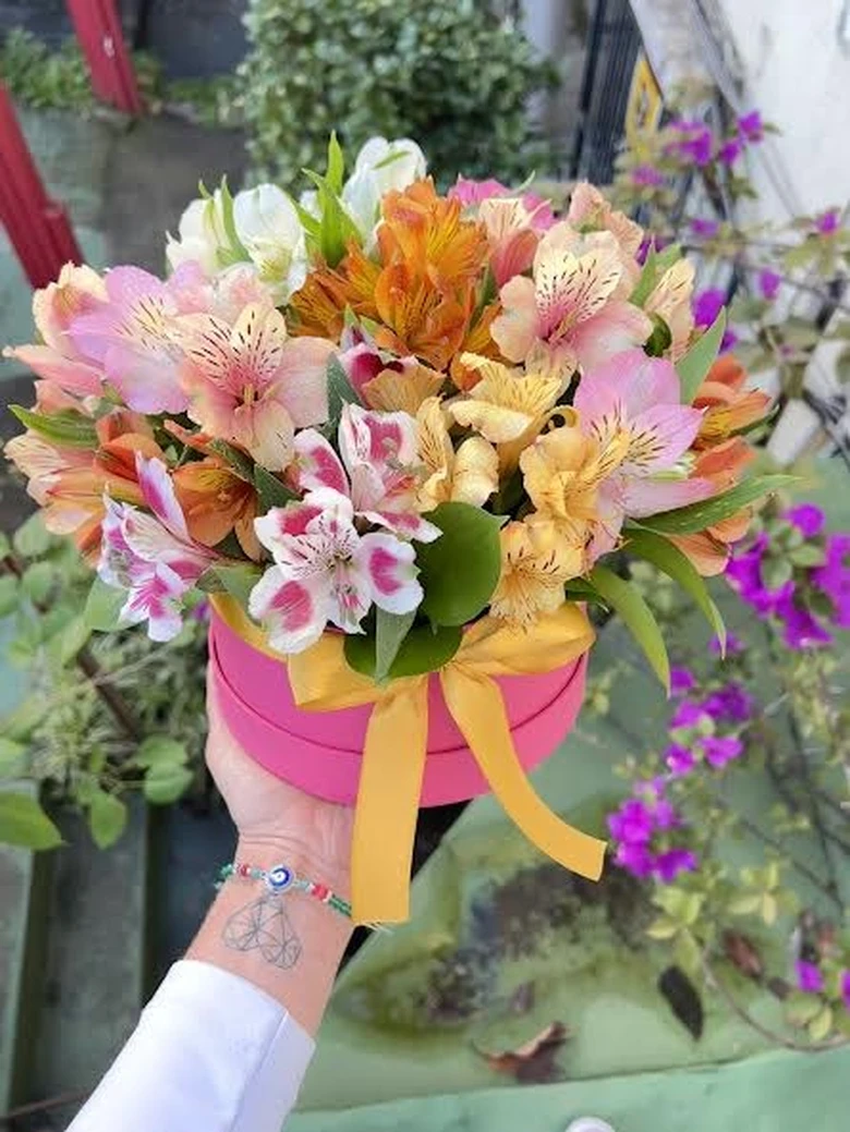 Um box lindo e colorido com as alegres astromélias.