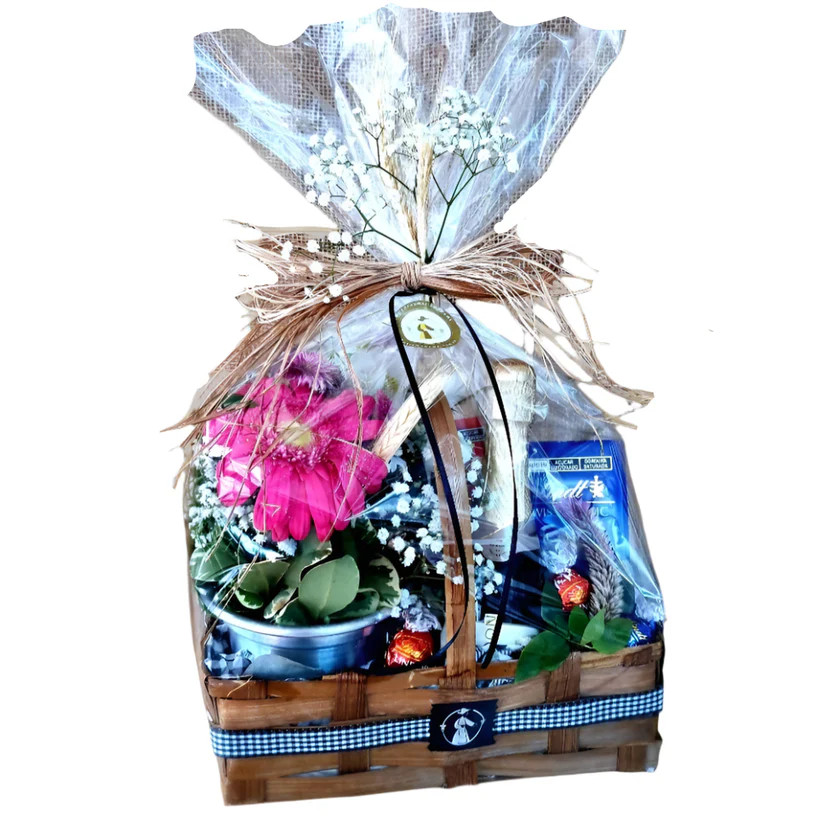 Cesta com Chocolates Lindt, Chandon e Flor
