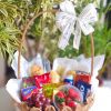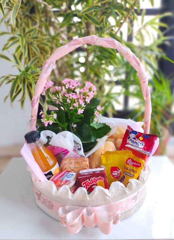 1 flor natural (Kalanchoe rosa) no centro da cesta